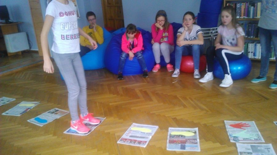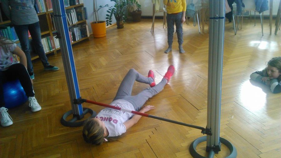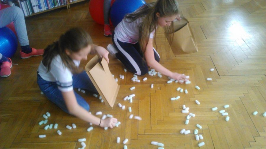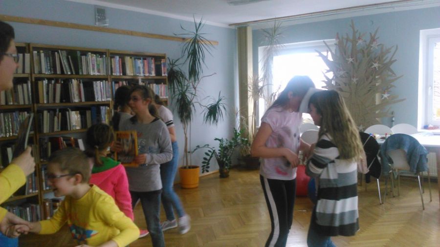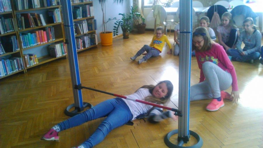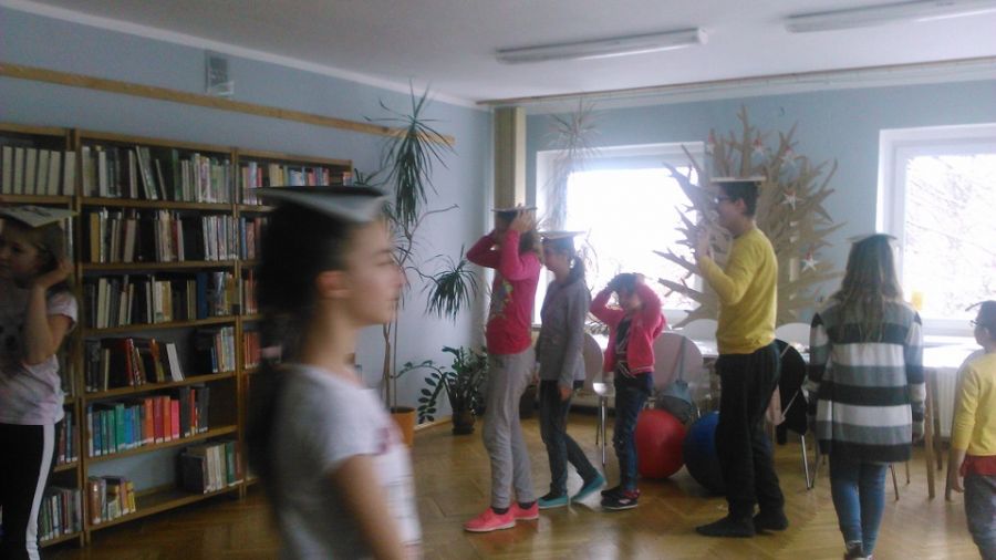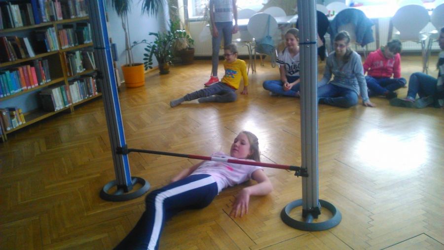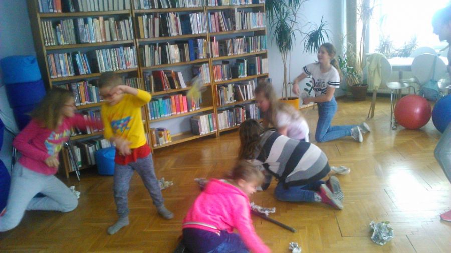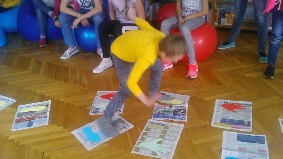 Któż nie zna wesołego wierszyka Juliana Tuwima "Bambo". Utwór opowiada historię Bambo, młodego czarnego dziecka, które pilnie uczy się w afrykańskiej szkole. Kiedy wraca do domu "psoci i figluje". Dlatego biorąc przykład z naszego bohatera zaplanowałyśmy mało nauki a dużo dobrej zabawy figli i migli. Poszalałyśmy na całego: przejście pod najniżej zawieszoną tyczką, bitwa na papierowe kule, szybka jazda na rozłożonej gazecie, przejście po śladach Bambo, zbieranie pogubinych przedmiotów, przenoszenie gazety na głowie,ramieniu i dłoni.
